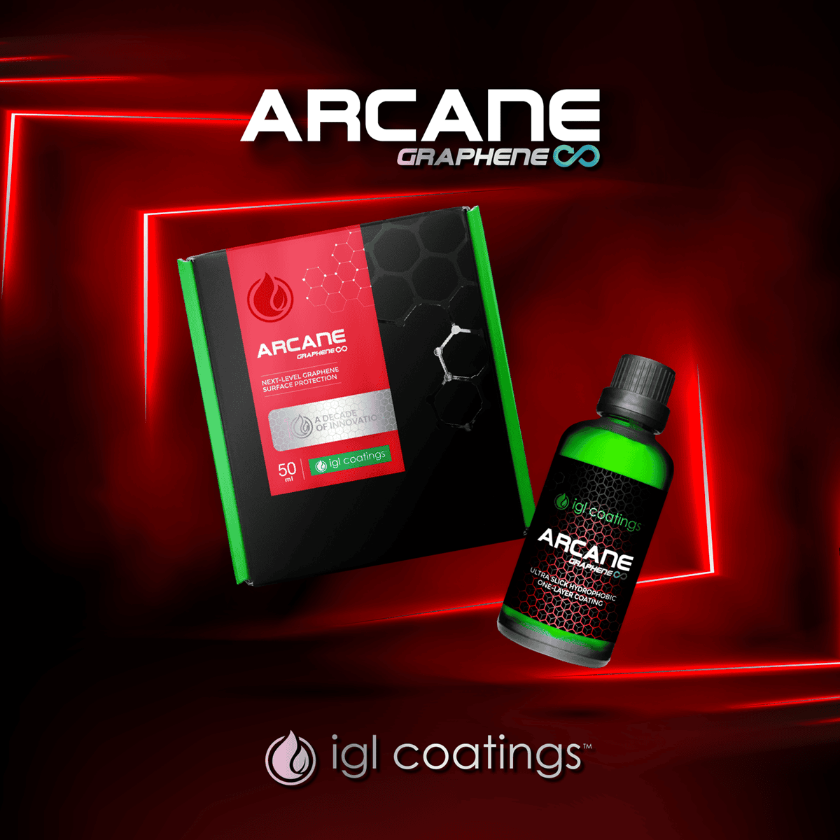Az ARCANE a kerámia bevonatok következő evolúciója, amely bemutatja a Graphene Infinite-ot: a világ első alacsony szén-dioxid-kibocsátású grafénjét. A 9H keménységű ARCANE akár 4 éves tartósságot biztosít, javított hidrofobicitást és lenyűgöző fényes felületet nyújt.